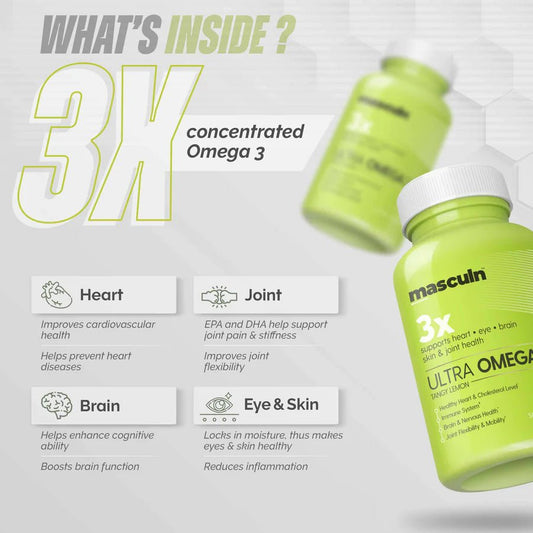 Masculn Ultra Omega 3 Fish Oil Capsules For Women & Men | 60 Softgels