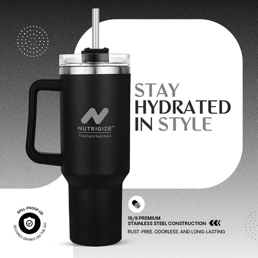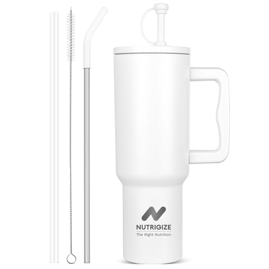 Nutrigize Stainless Steel Tumbler with Steel Straw (Hot & Cold), 1200 ml