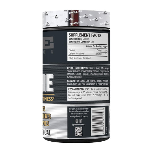 Pole Nutrition 100% Pure Caffeine 200mg, 100 caps