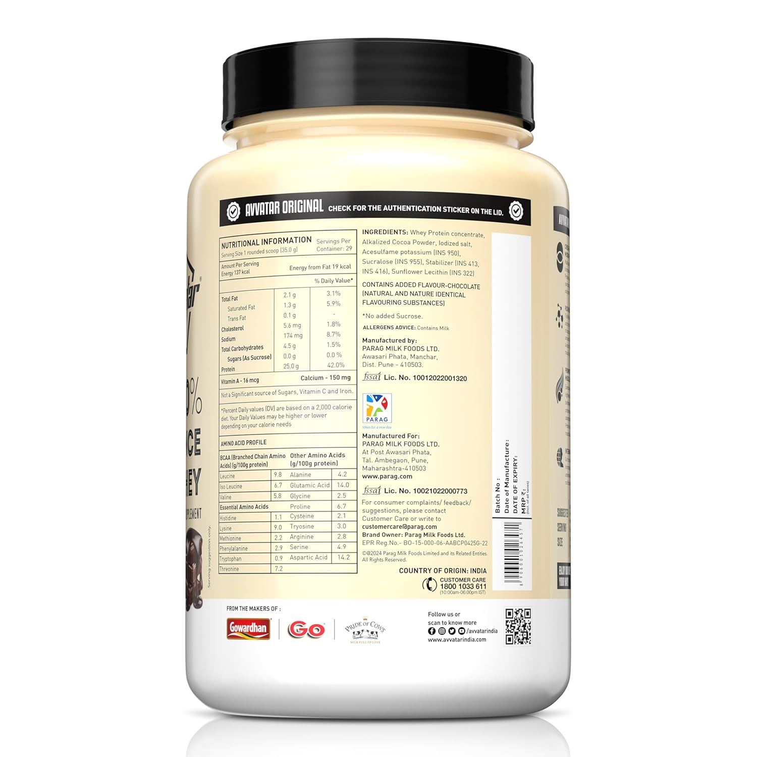 Avvatar 100% Performance Whey Protein is rich in essential amino acids, which help in the muscle building process. Due to the freshness of the raw whey and other ingredients used in making of all Avvatar products, Avvatar 100% Performance Whey Protein provides you with rapid absorption without using any artificially added digestives.
