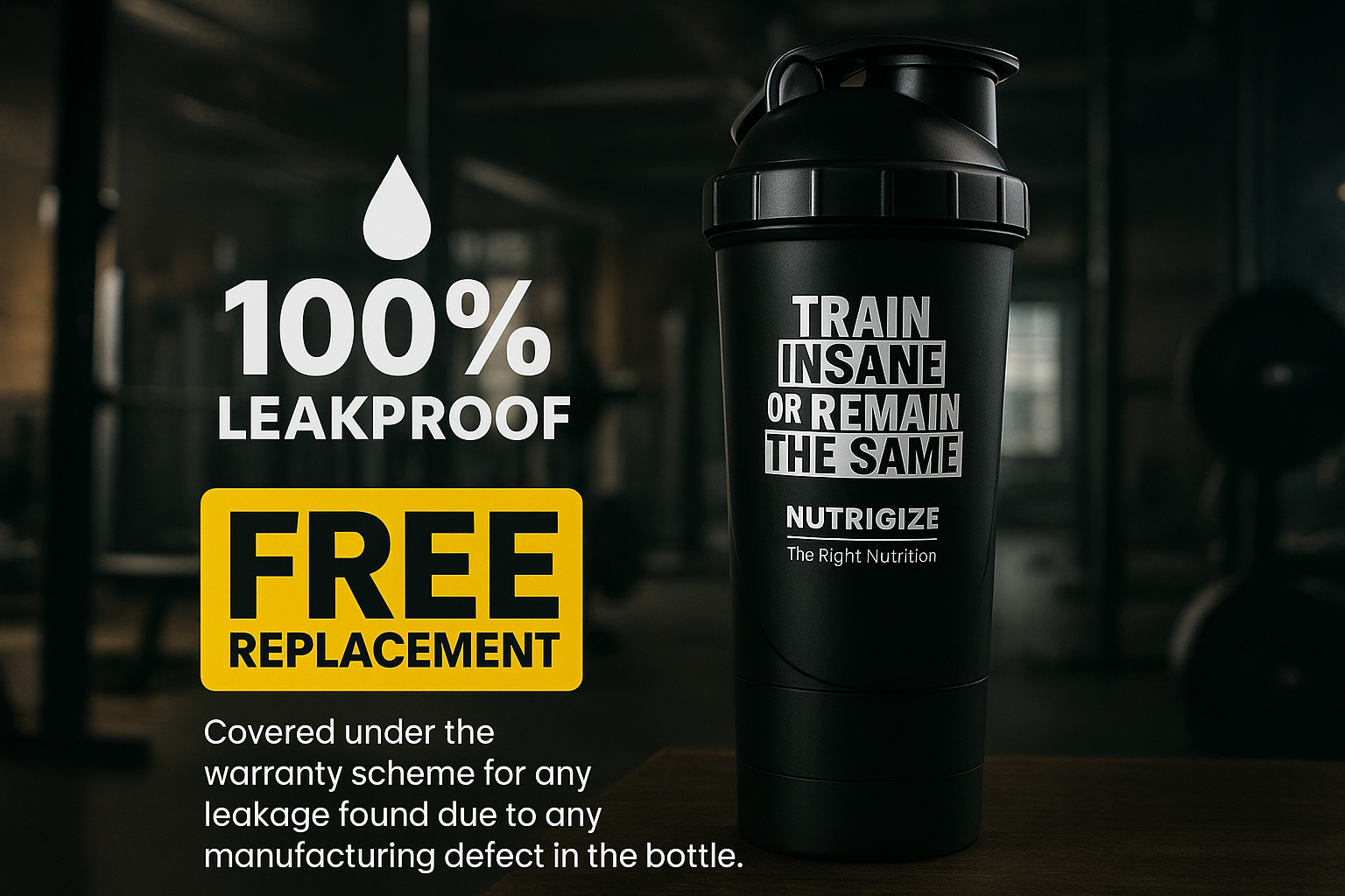 Nutrigize Superior Protein Shaker Bottle with powder storage is a sleek, stylish and functional transparent bottle with a unique design. This gym shaker bottle with storage has an ultra-tight screw-on lid that is 100% leakage proof & has a lockable flip top that ensures no drips. This protein shake blender has a unique steel blender ball that efficiently blends the constituents to achieve more consistent smoothies, juices or protein shakes. This Blender bottle comes with a detachable airtight compartment to store pills, mixes, protein powder & more so that you can carry them wherever you want. It has a wide-mouth design that is ideal for blending protein shakes, pre-workout supplements, BCAA supplements, smoothies and juices. This bottle has a capacity of 700 ml. It is a BPA free product that is easy to clean & is freezer safe.