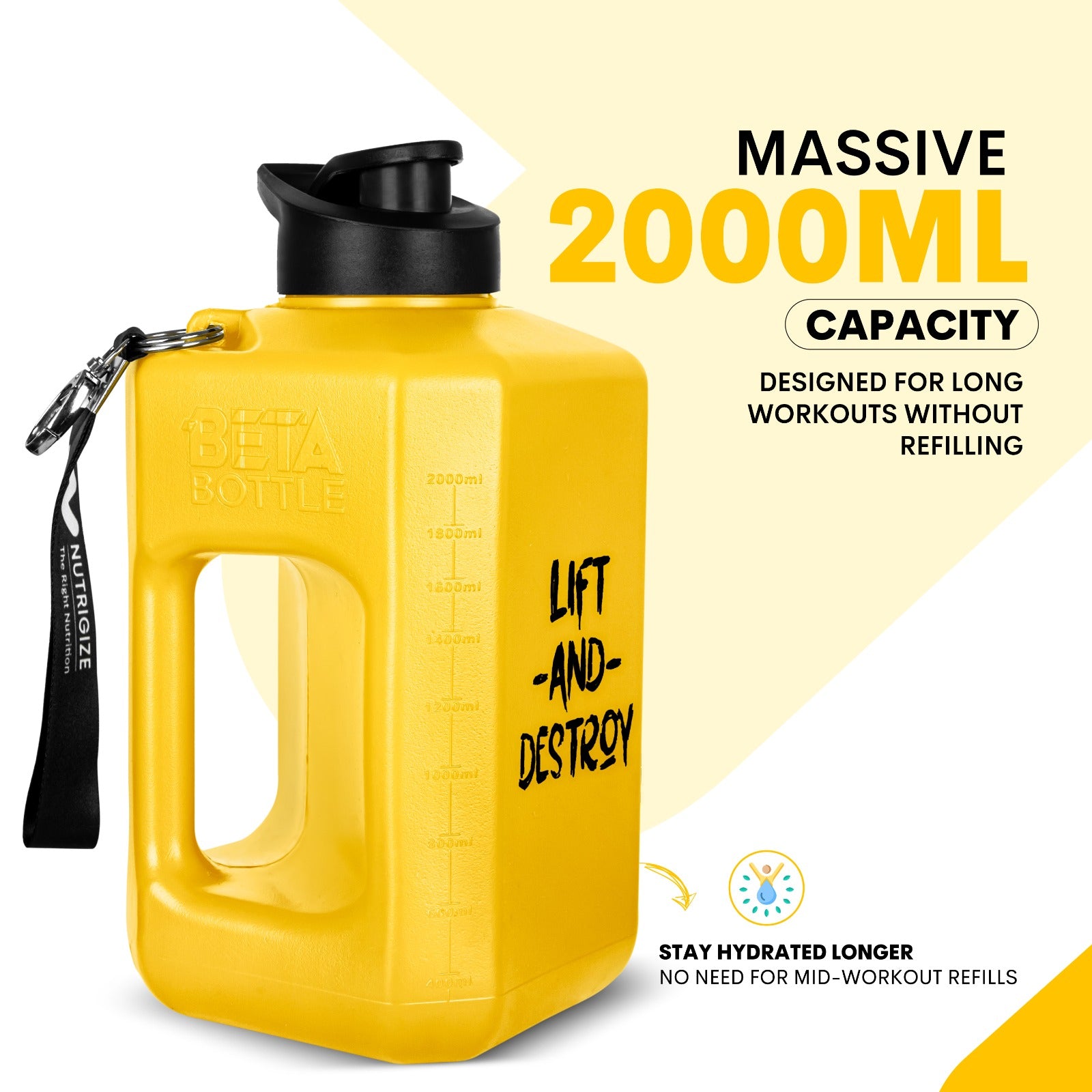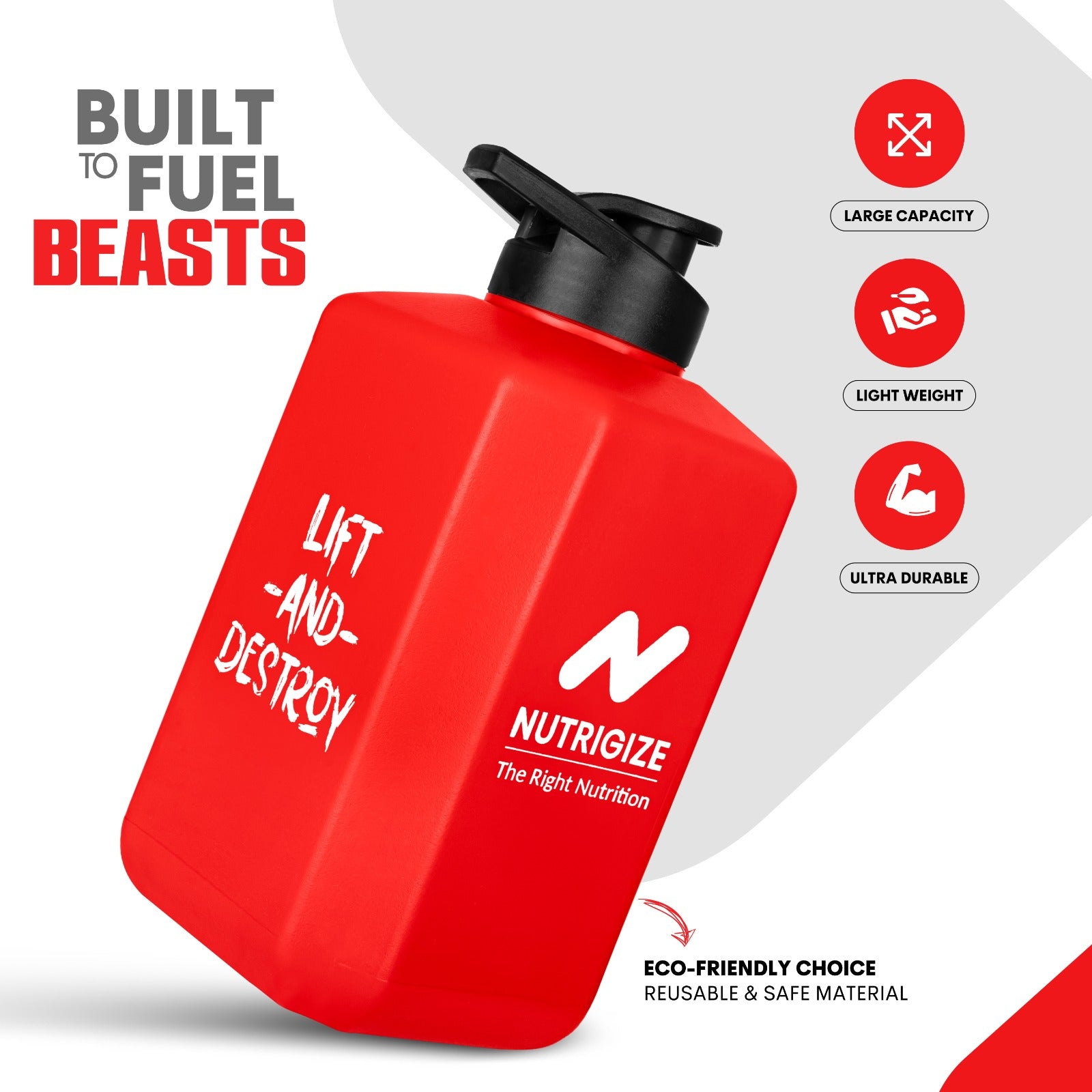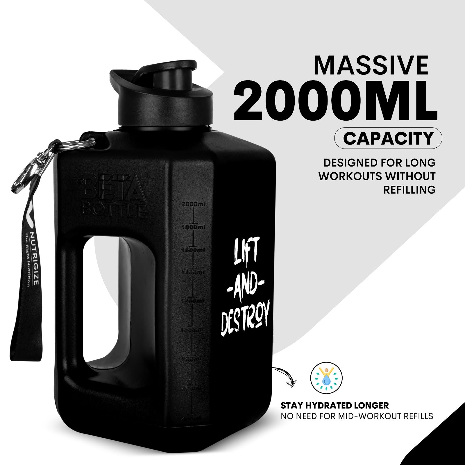 Stay ahead of your hydration goals with the Nutrigize Gallon Water Bottle 2 Litre with Handle – your perfect gym partner designed for high-performance lifestyles. Whether you're hitting the gym, powering through an outdoor workout, or just looking to increase your daily water intake, this gallon water bottle has got you covered. With a 2 litre capacity, this gym water bottle 2 litre men will keep you fueled and refreshed without needing constant refills. Built for serious athletes and fitness enthusiasts, the bottle is made from BPA-free, durable plastic that’s safe, lightweight, and designed to last. The built-in carry handle makes it convenient to take with you anywhere – whether to the gym, office, or on the road. Plus, the leak-proof design means you’ll never have to worry about spills, even in your gym bag. More than just a bottle, it’s a hydration companion with purpose. The wide mouth allows for easy filling, cleaning, and even adding ice cubes or pre-workout mixes. Whether you're lifting heavy, going on long hikes, or just need that extra push to drink more water daily, this gym bottle 2 litre delivers unmatched convenience and capacity.