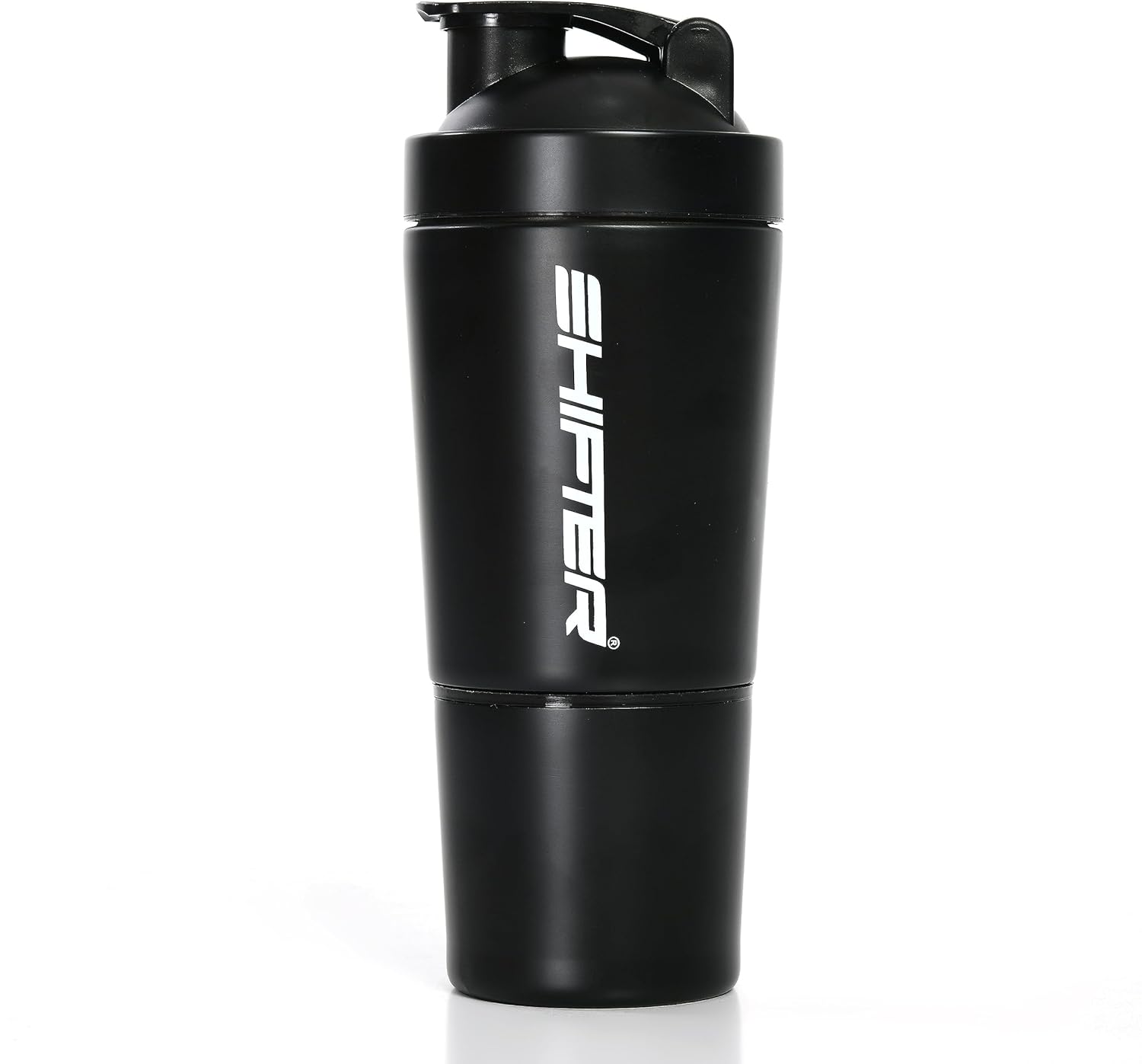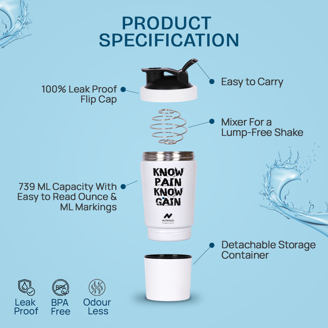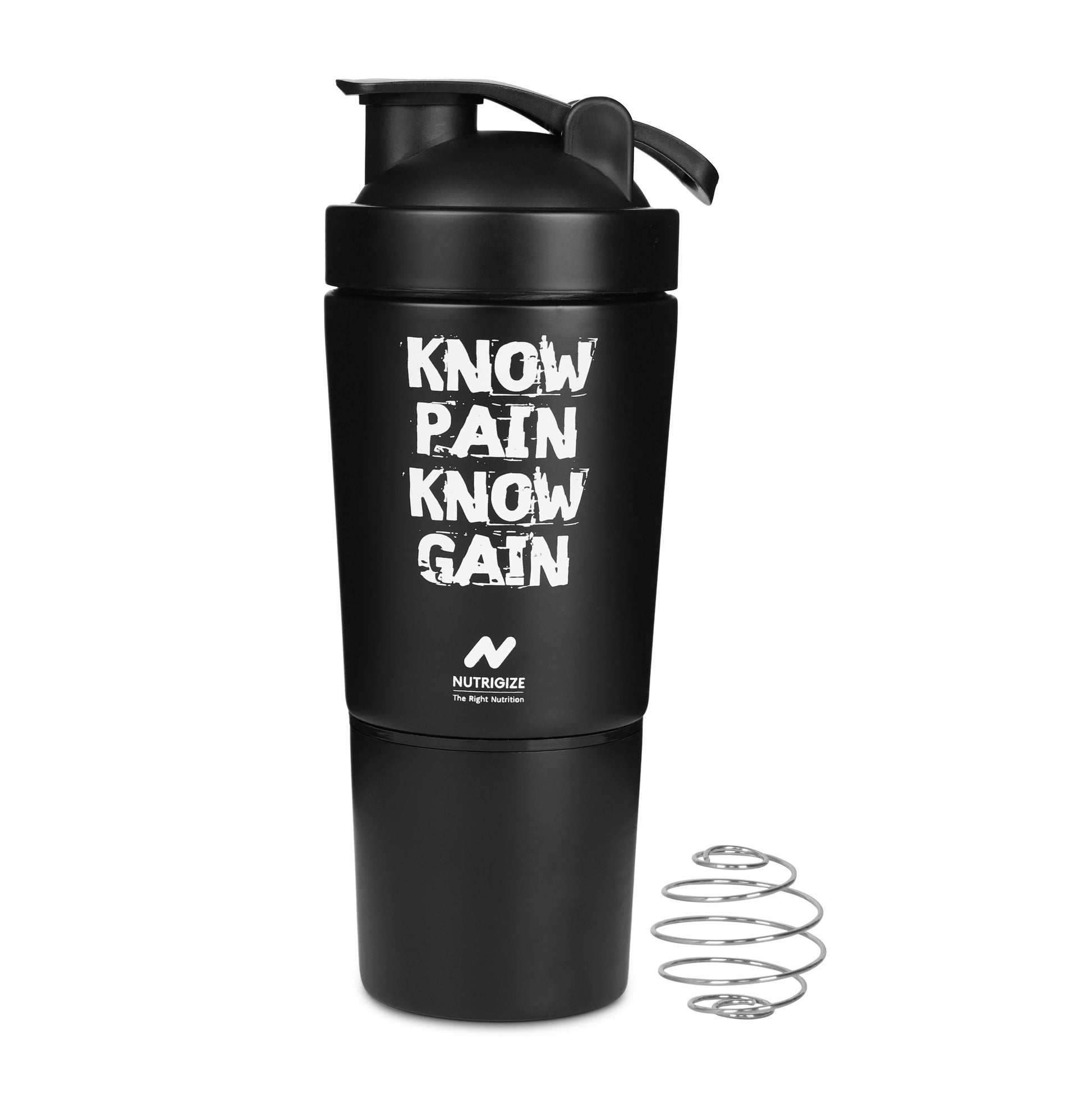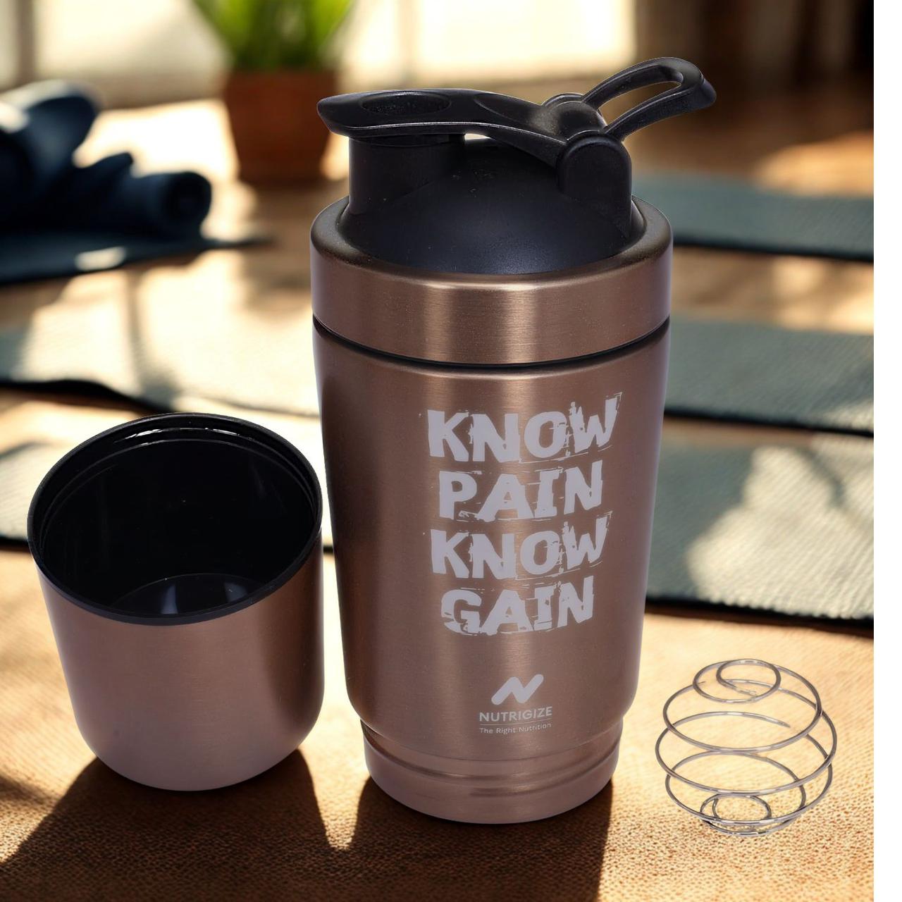 Nutrigize Stainless Steel Shaker Bottle, Protein Shaker with Extra Compartment for storage, 590 ml