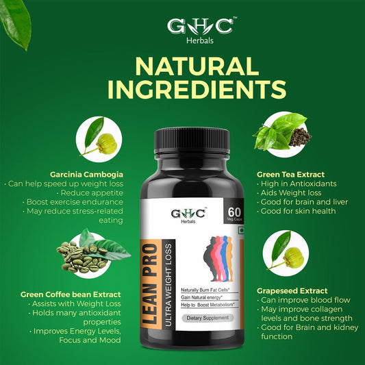 GHC Herbals Lean Pro | Ultra Weight Loss (60 Veg Capsules With Free Diet Chart)